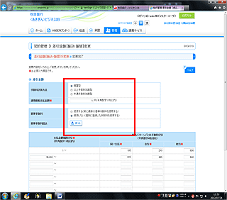 ビジネスIBでは、振込手数料を先方負担として振込金額から差引く場合、標準では『窓口での振込手数料』を差引く設定になっております。